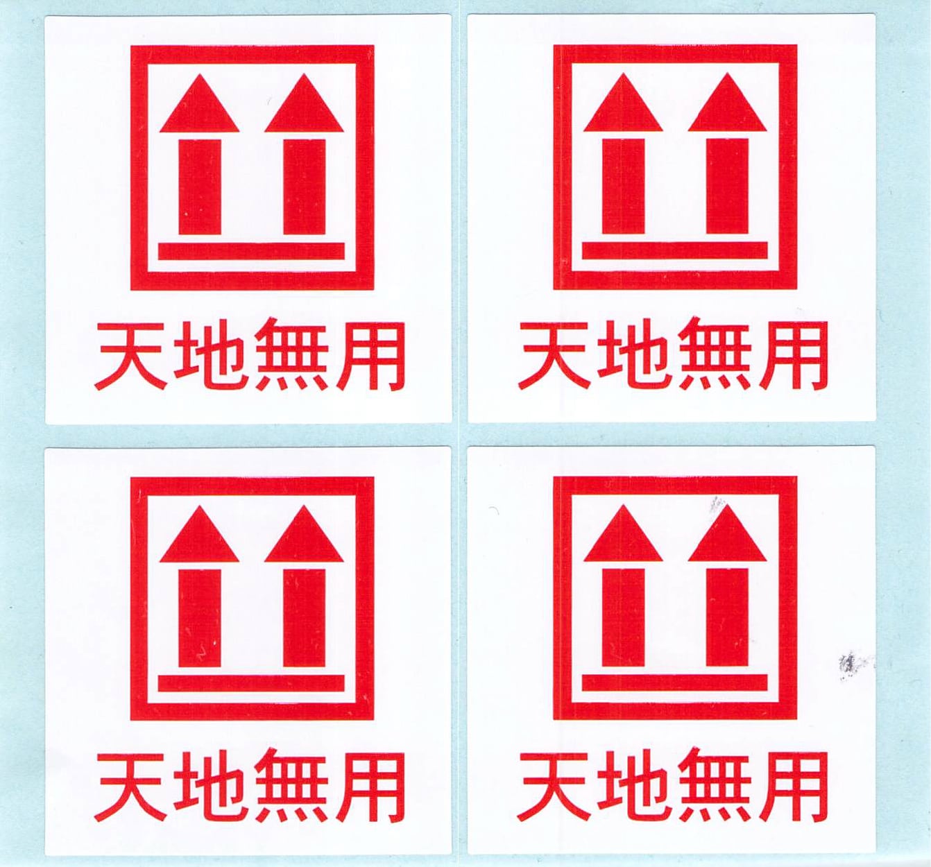 天地無用ラベル 赤色 グロス 50×50 4丁/シート